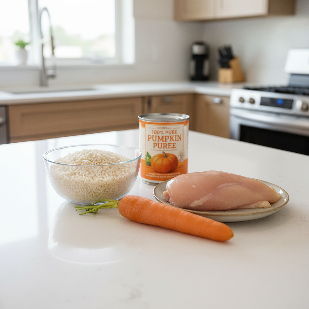 • Rice: Always use plain white rice. While brown rice is healthier for everyday meals, its high fiber content can be tough on a sensitive digestive system. White rice provides easily accessible energy.